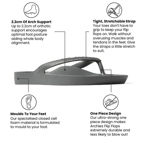 When ordering a pair of Archies Arch Support Jandals, Arch Support Slides or Arch Support Insoles, we recommend you choose your normal running shoe size.