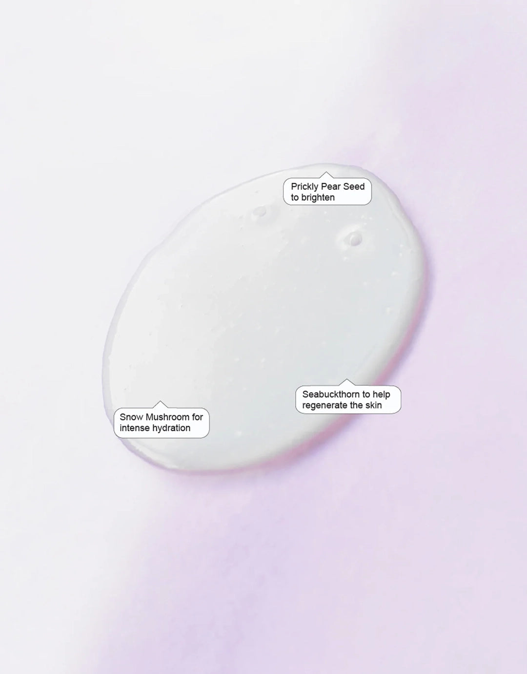 This lightweight formula is your skin's rebound. Formulated with Snow Mushroom & Sodium Hyaluronate for intense hydration and plumping; Australian Rosella & Prickly Pear Seed work to encourage brightening & helps even skin tone. Seabuckthorn helps replenish the skin, leaving you ready to face the day.