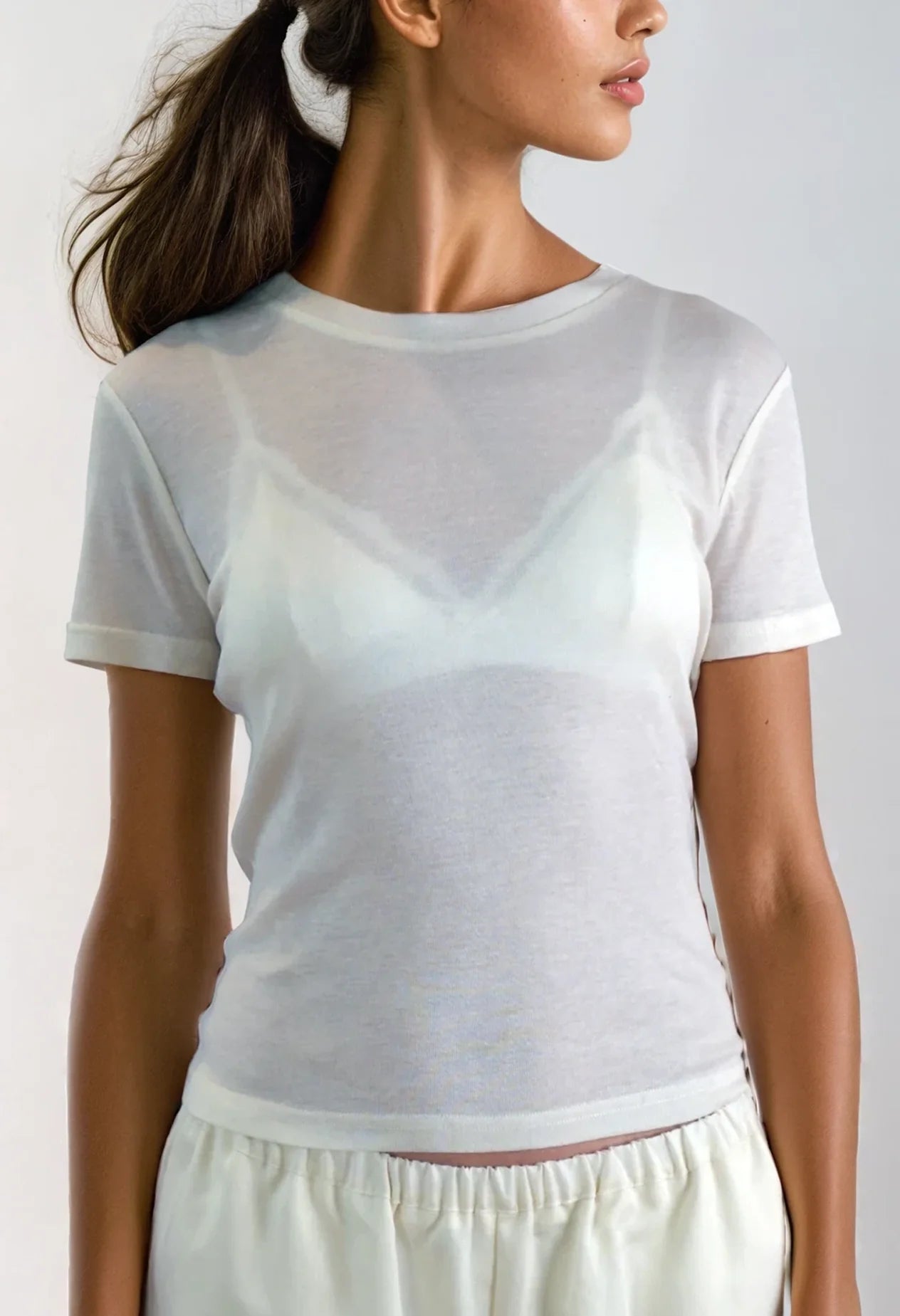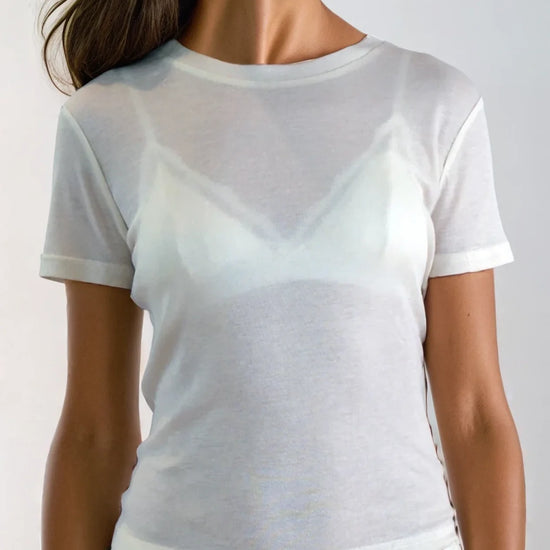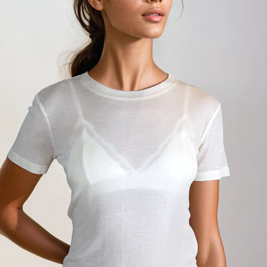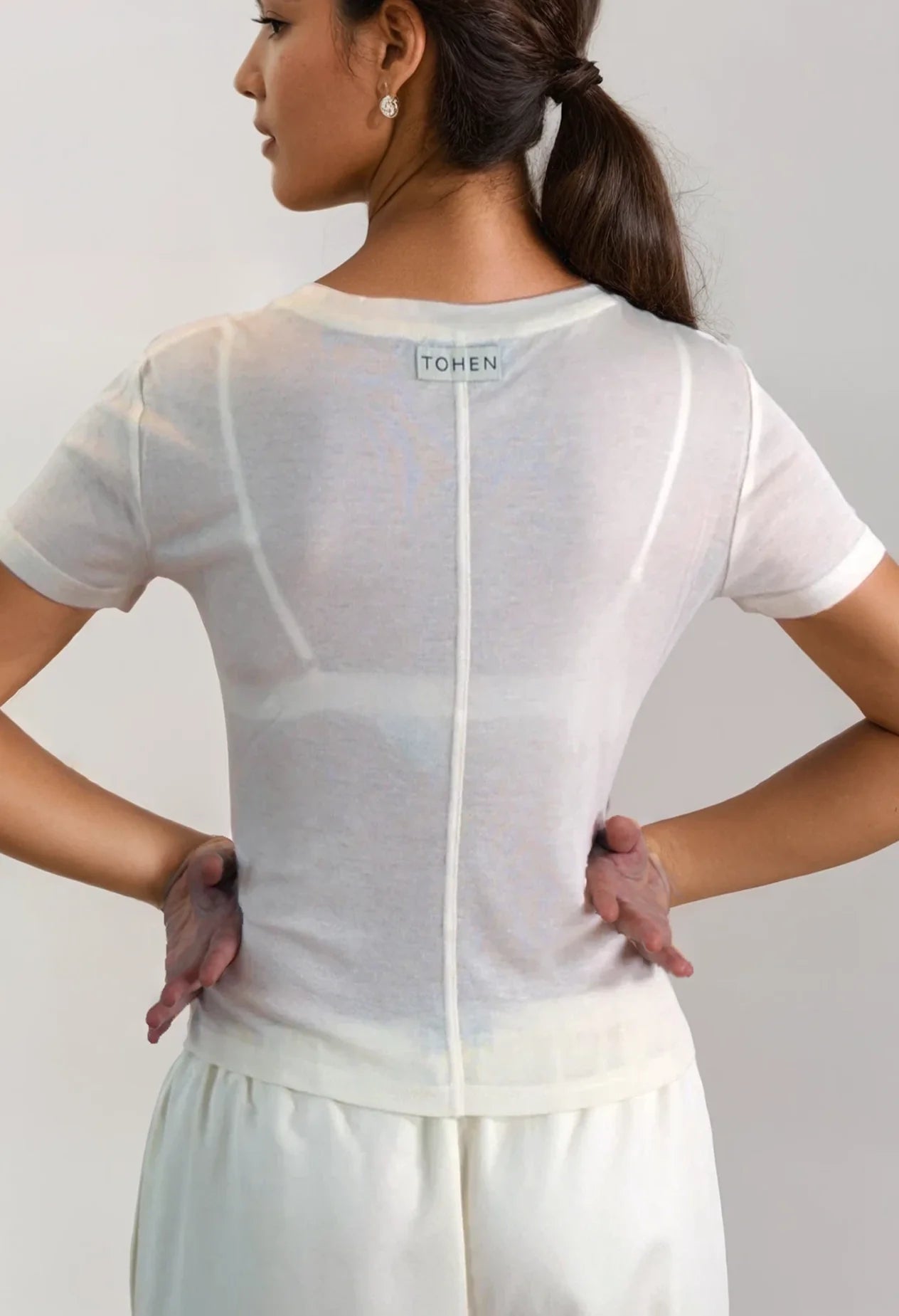 The Ines Tee is a modern take on the everyday essential lightweight, slightly sheer, and designed for fluid layering. Cut from a soft lyocell blend, it features a clean crew neckline, short sleeves, and a subtle drape. Finished with a branded woven label at the centre back neckline, it's a refined staple with thoughtful detail.
