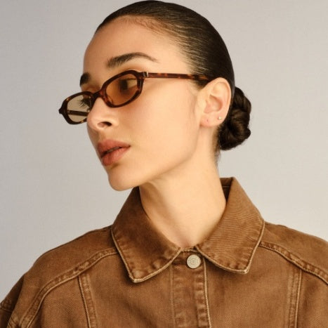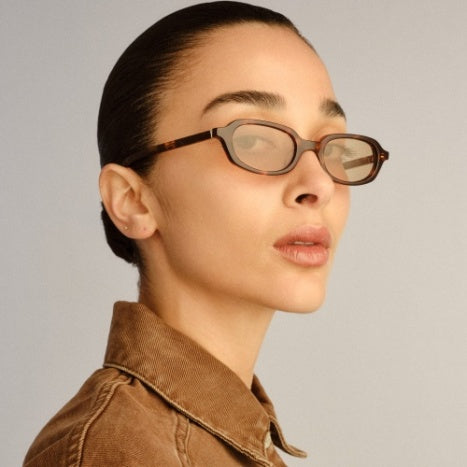 Delicately designed for quiet sophistication. The Mimi is a petite rectangle frame with softened edges offering a subtle balance of structure and ease. Finished with super-fine temples and our organic wave hardware in gold it delivers a delicate signature touch.