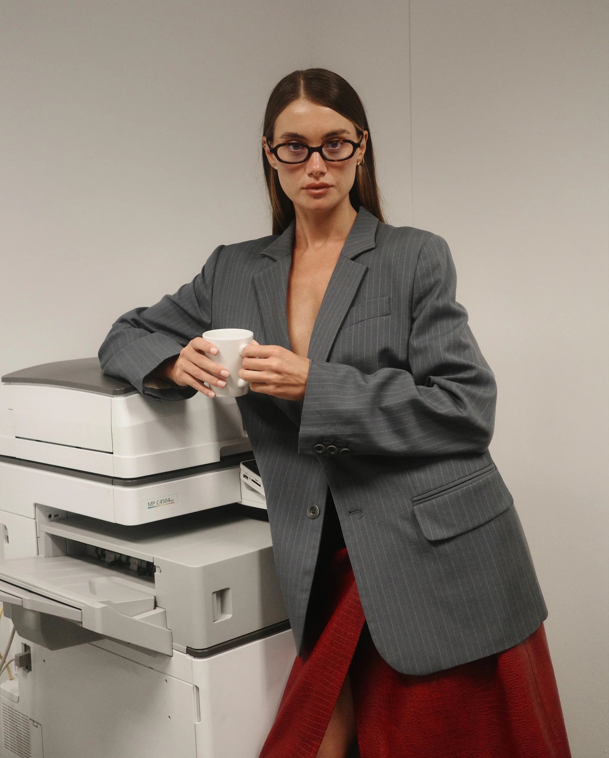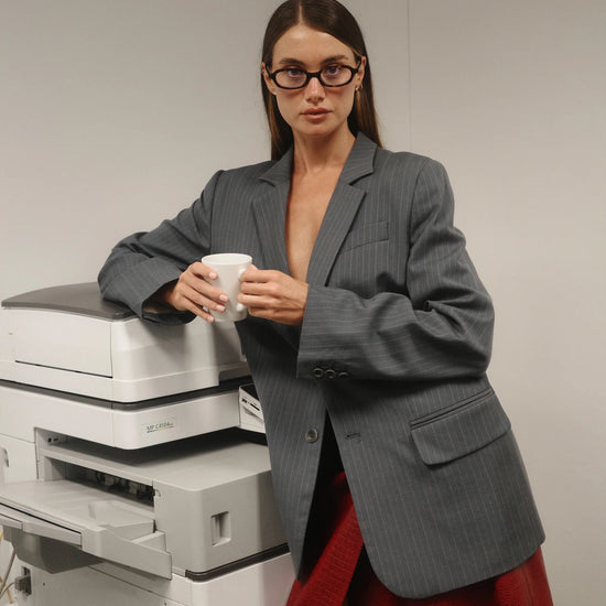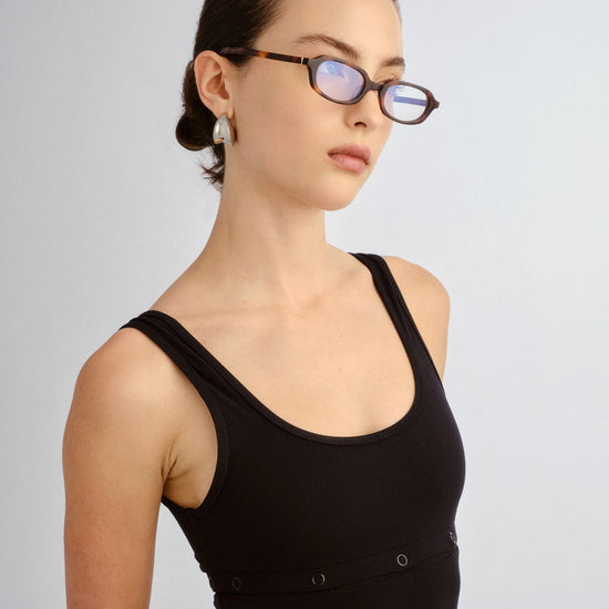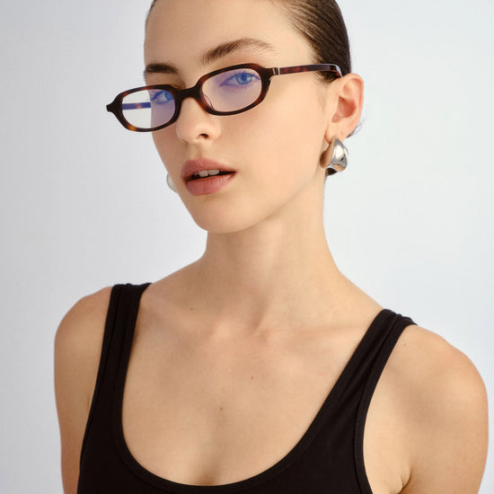 The Mimi is a playful ode to vintage eyewear, featuring a softly rounded rectangular silhouette with sculpted contours for a distinctive, fashion-forward look. Finished with a delicate gold metal Luv Lou plaque detail, it brings an elevated yet effortless charm to everyday Blue Light wear.