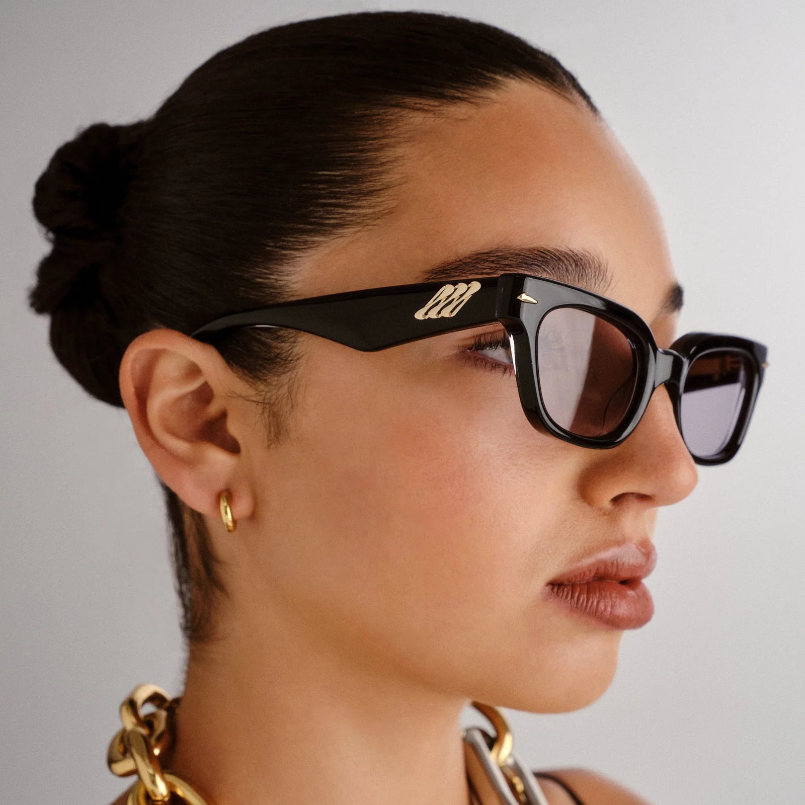 • Finished in a luxurious obsidian black frame with smoke tint lenses.