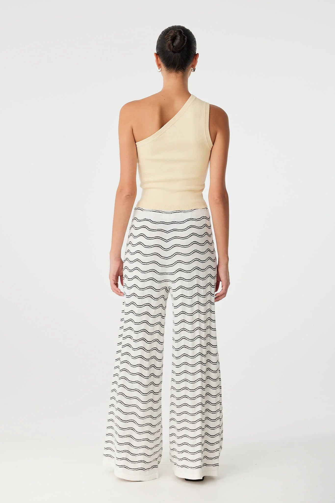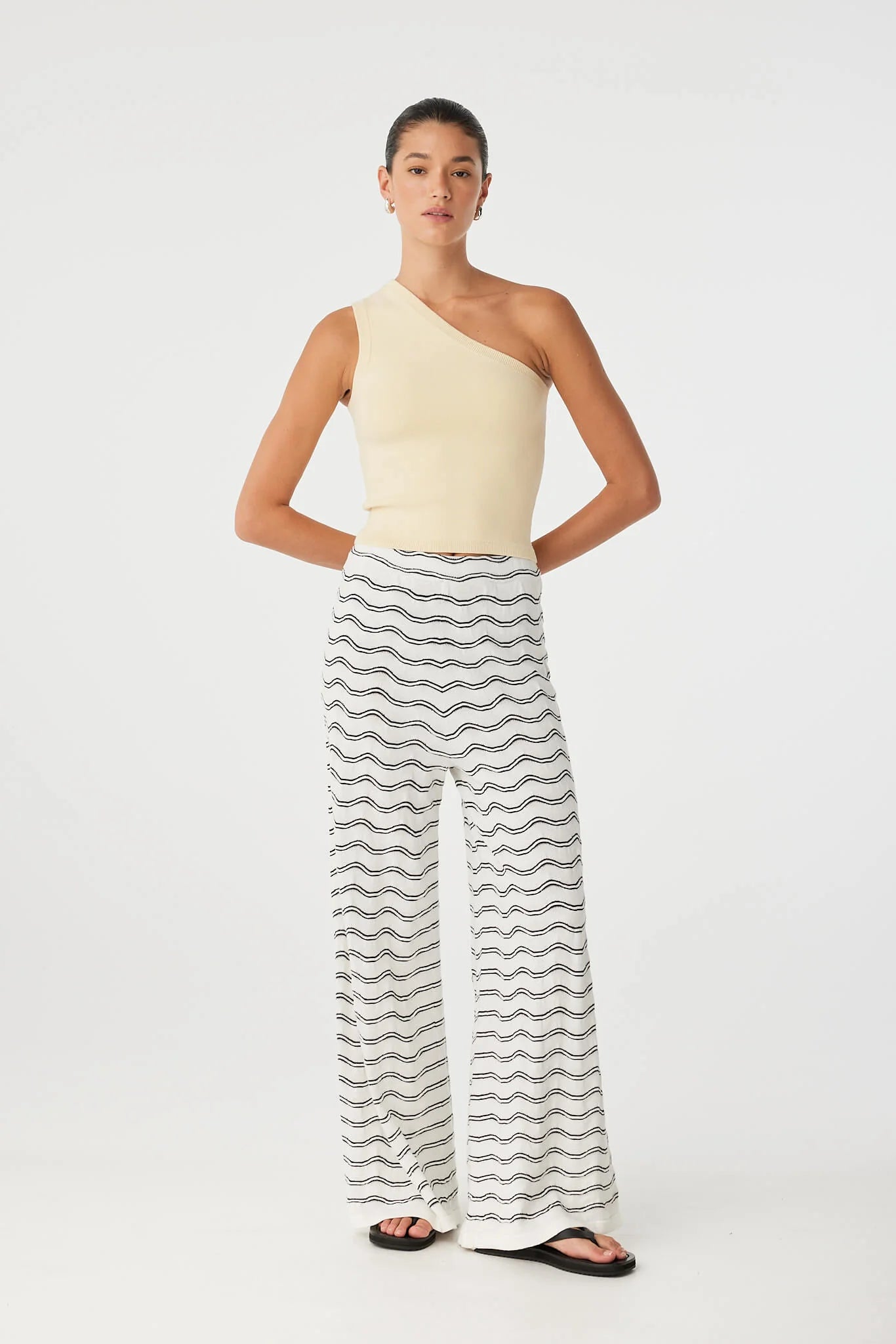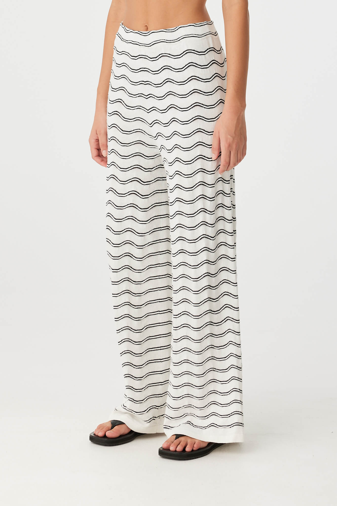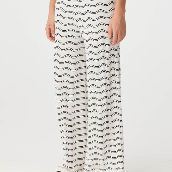 A statement wide-leg pant in our signature wave knit. The Onda is crafted from a breathable linen–organic cotton blend, with a soft elastic waistband and flowing drape. Designed to move with rhythm and ease, a piece that transitions effortlessly from elevated lounge to coastal wear.