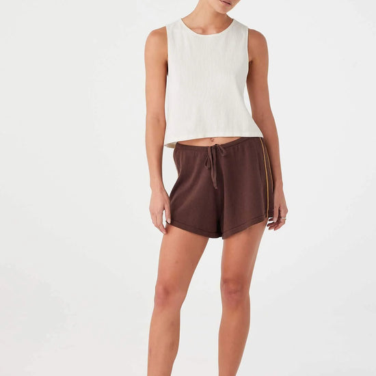 The Pippa Drawstring Short in Espresso is a relaxed-fit style crafted from a linen–organic cotton blend. Designed with contrast side panel detailing and an adjustable drawcord waist, it offers ease and natural breathability. Lightweight and versatile, it’s designed for warm-weather dressing or paired with the Pippa Tee for a coordinated set.