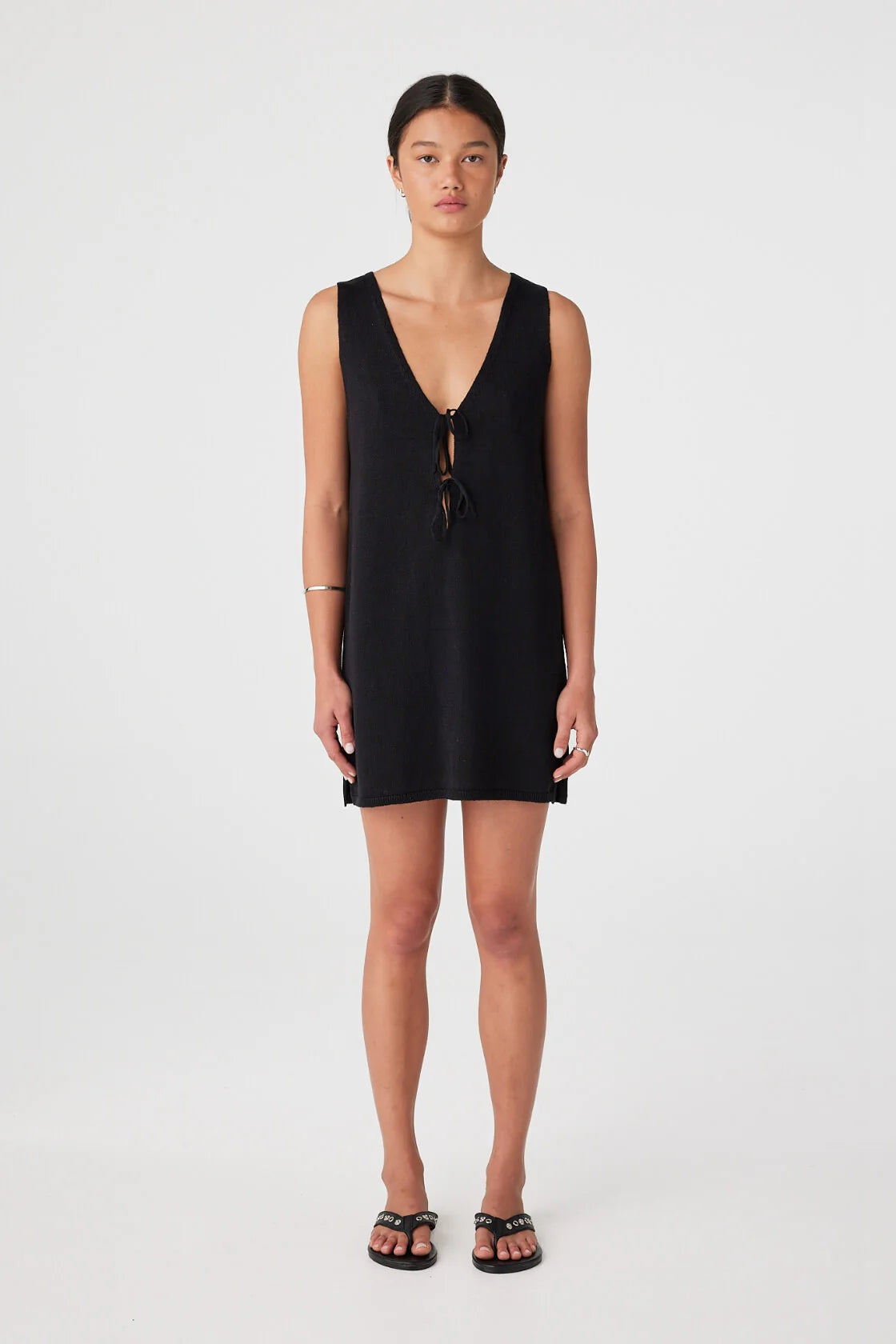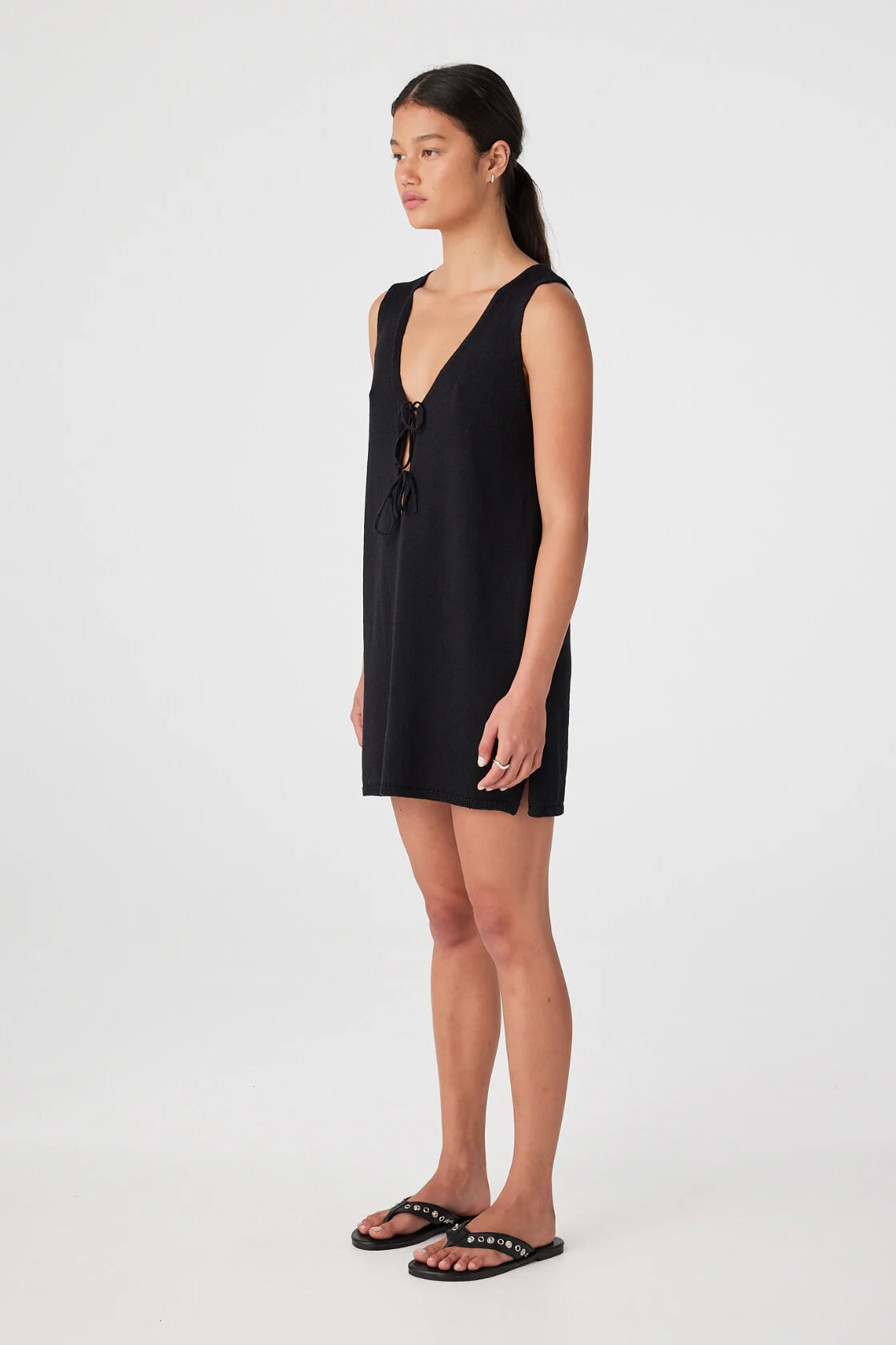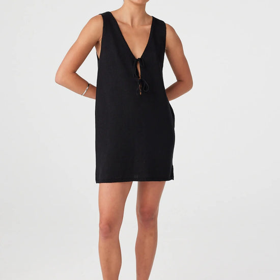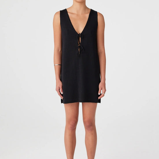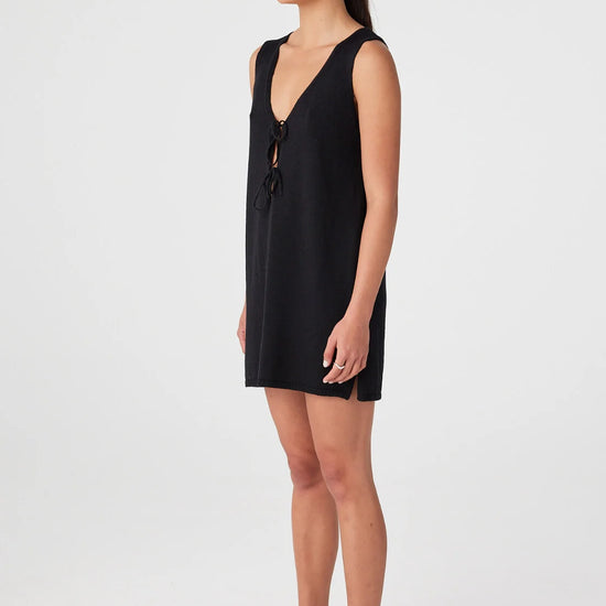 The Poppy Mini Dress in Black is a versatile essential with understated elegance. Its reversible design, soft V-neckline, and adjustable ties offer endless styling options, while the relaxed fit ensures all-day comfort.