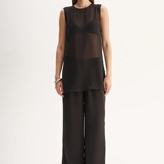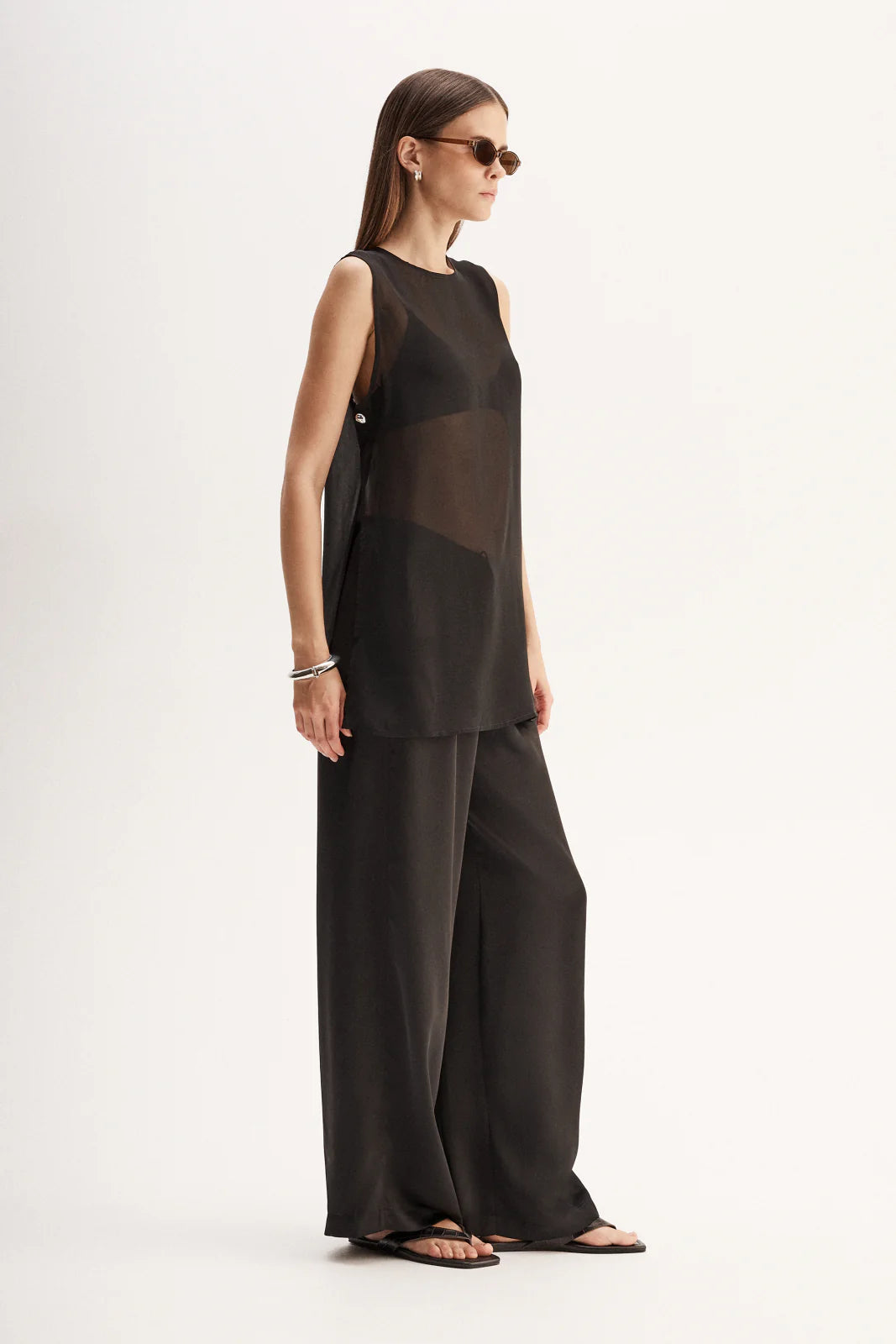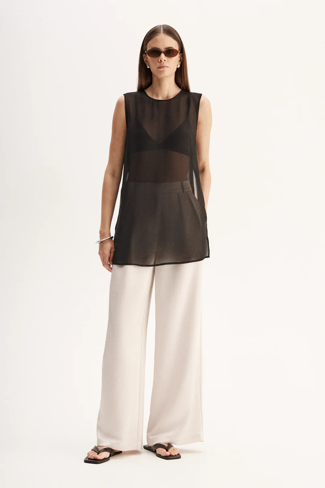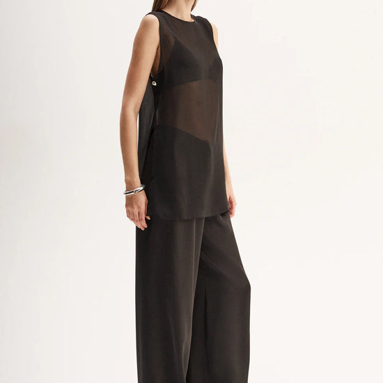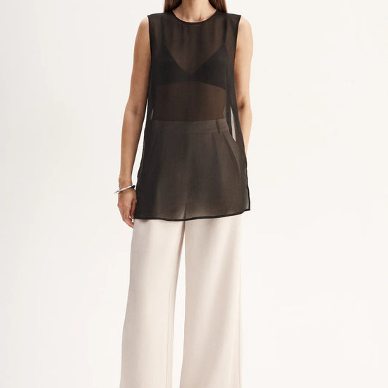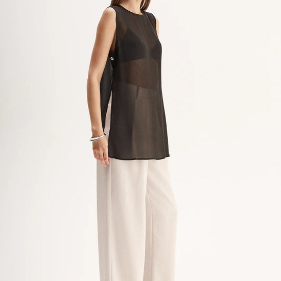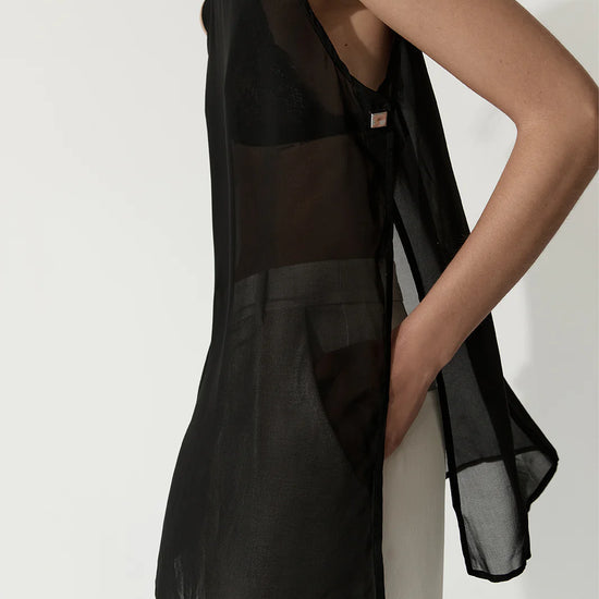 Made of an ultra-light semi-sheer fabric, the Rory Top is a tunic style piece designed for elevated day to night outfitting. With open sides and statement hardware detailing, this top is made to be worn over undershirts.