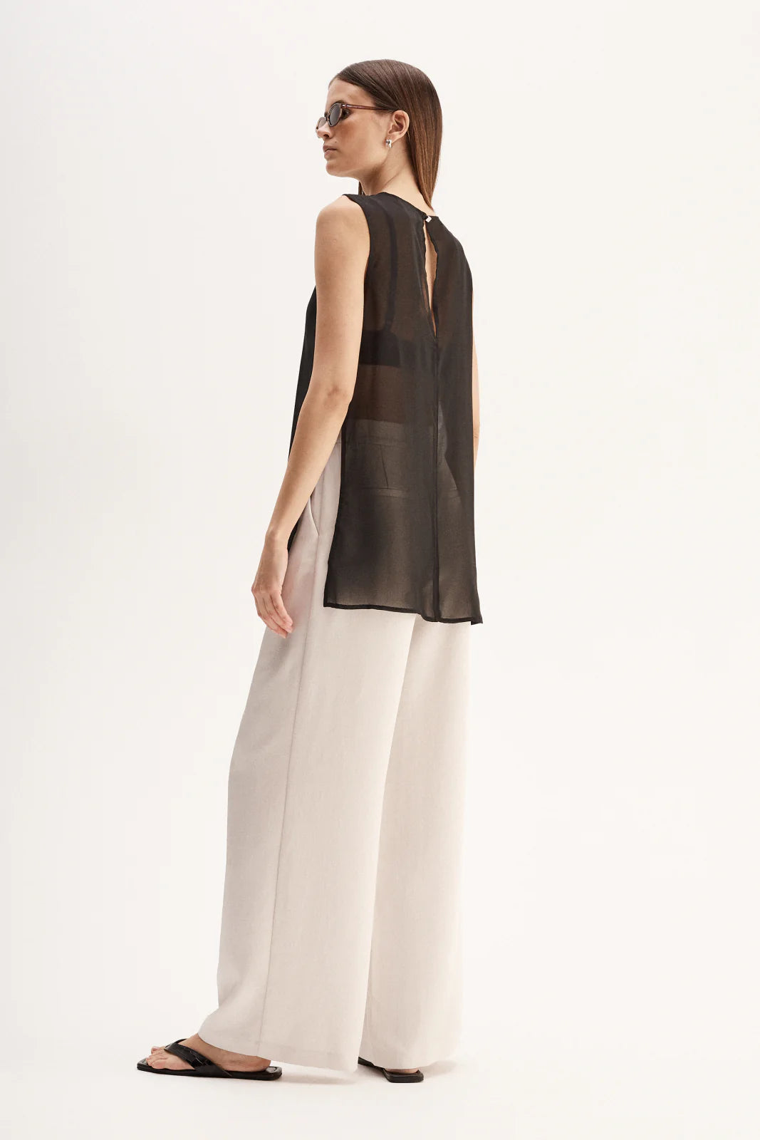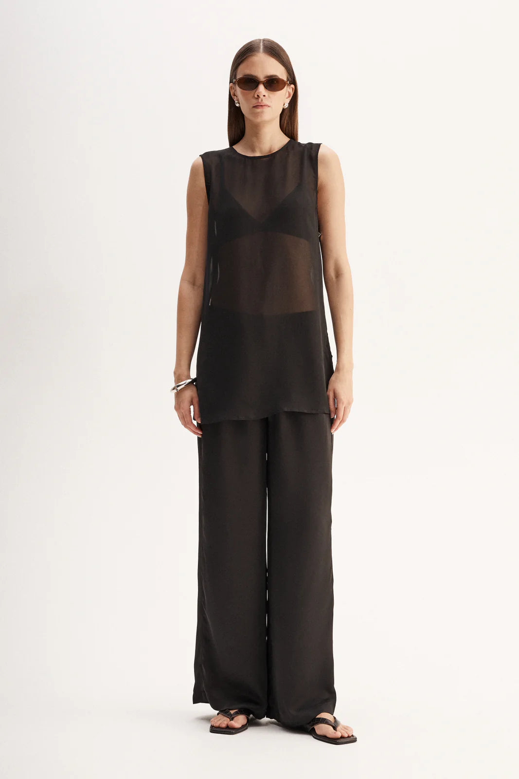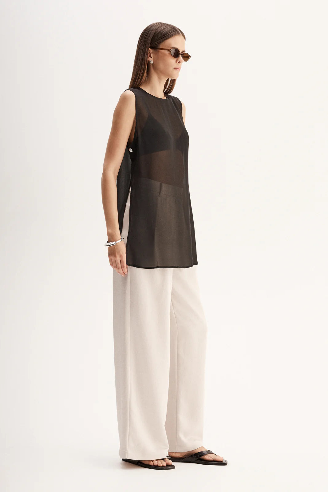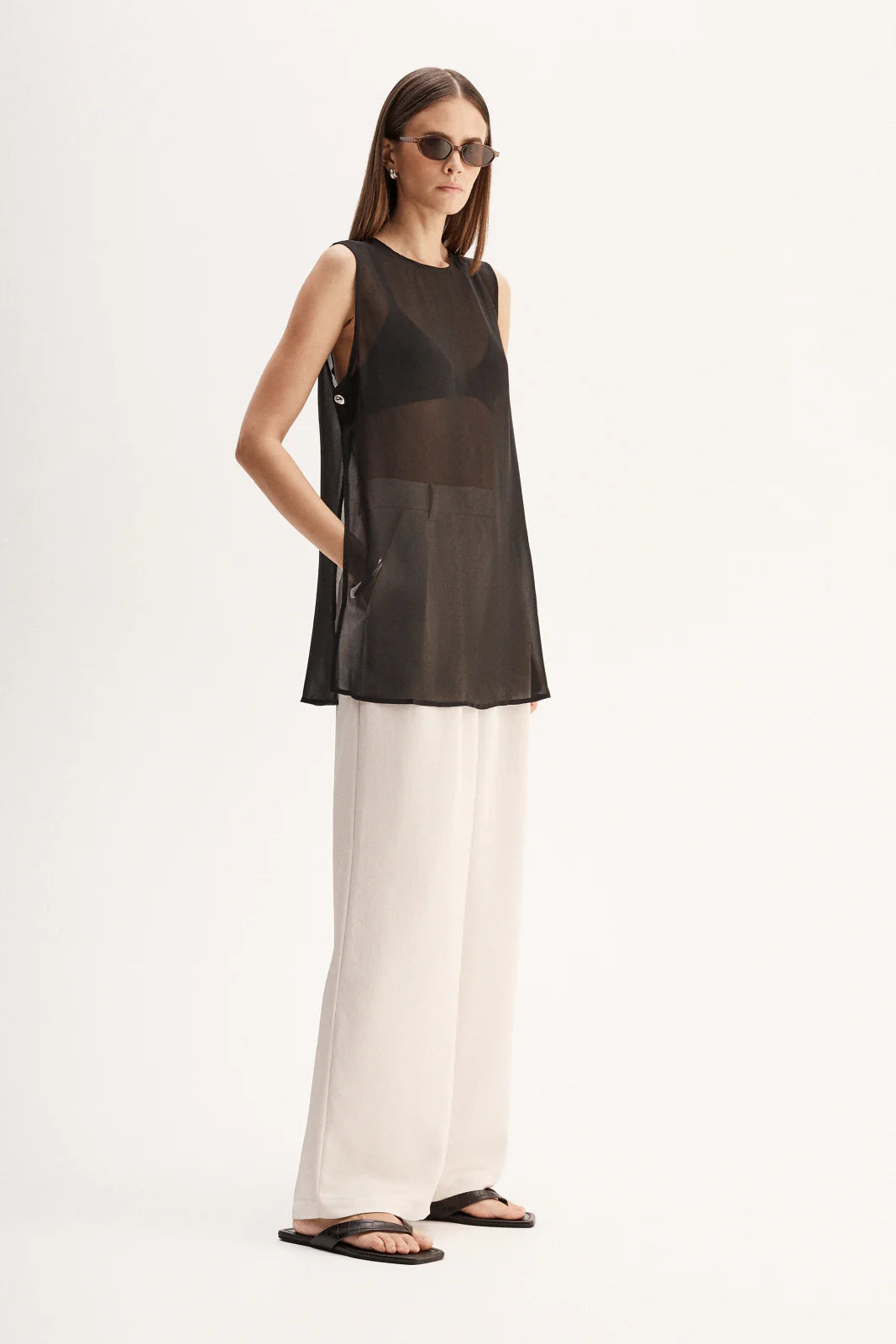 Made of an ultra-light semi-sheer fabric, the Rory Top is a tunic style piece designed for elevated day to night outfitting. With open sides and statement hardware detailing, this top is made to be worn over undershirts.
