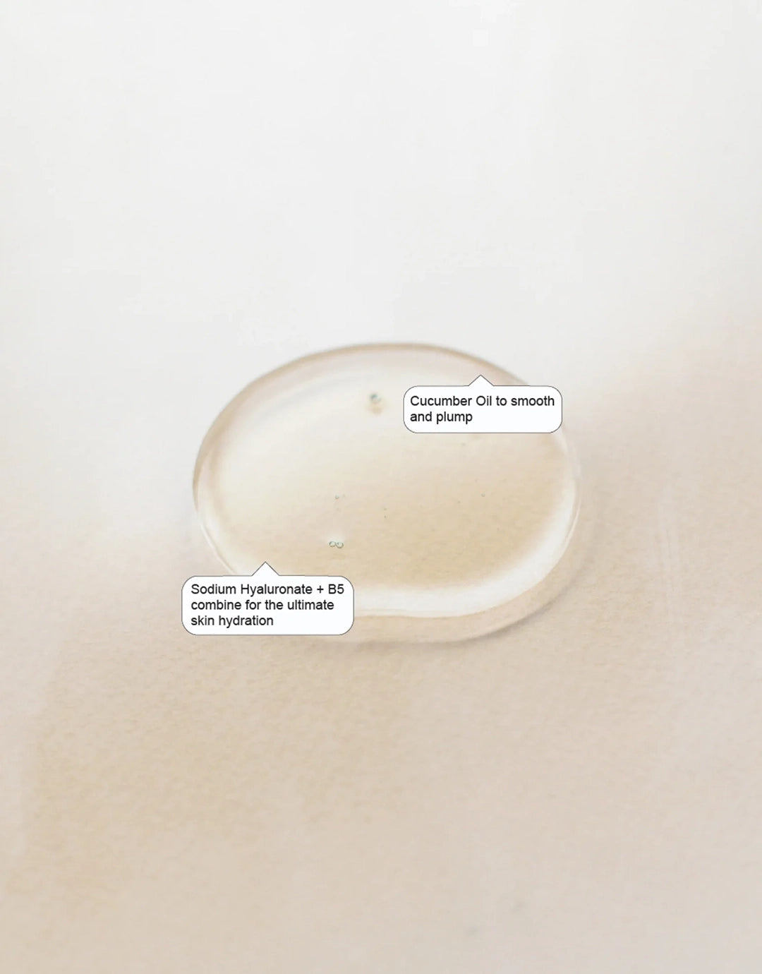 Ingredients: Aqua, Glycerin, Aloe Barbadensis (Aloe Vera) Leaf Juice Powder, Sodium Hyaluronate, Panthenol, Cucumis Sativus (Cucumber) Fruit Extract, Hamamelis Virginiana (Witch Hazel) Leaf Extract, Cochlearia Armoracia (Horseradish) Root Extract, Cucumis Sativus (Cucumber) Seed Oil, Chlorella Vulgaris Powder, Fucus Vesiulosus (Bladderwrack Kelp) Extract, Glyceryl Caprylate, Xanthan Gum, Acacia Gum, p-Anisic Acid.